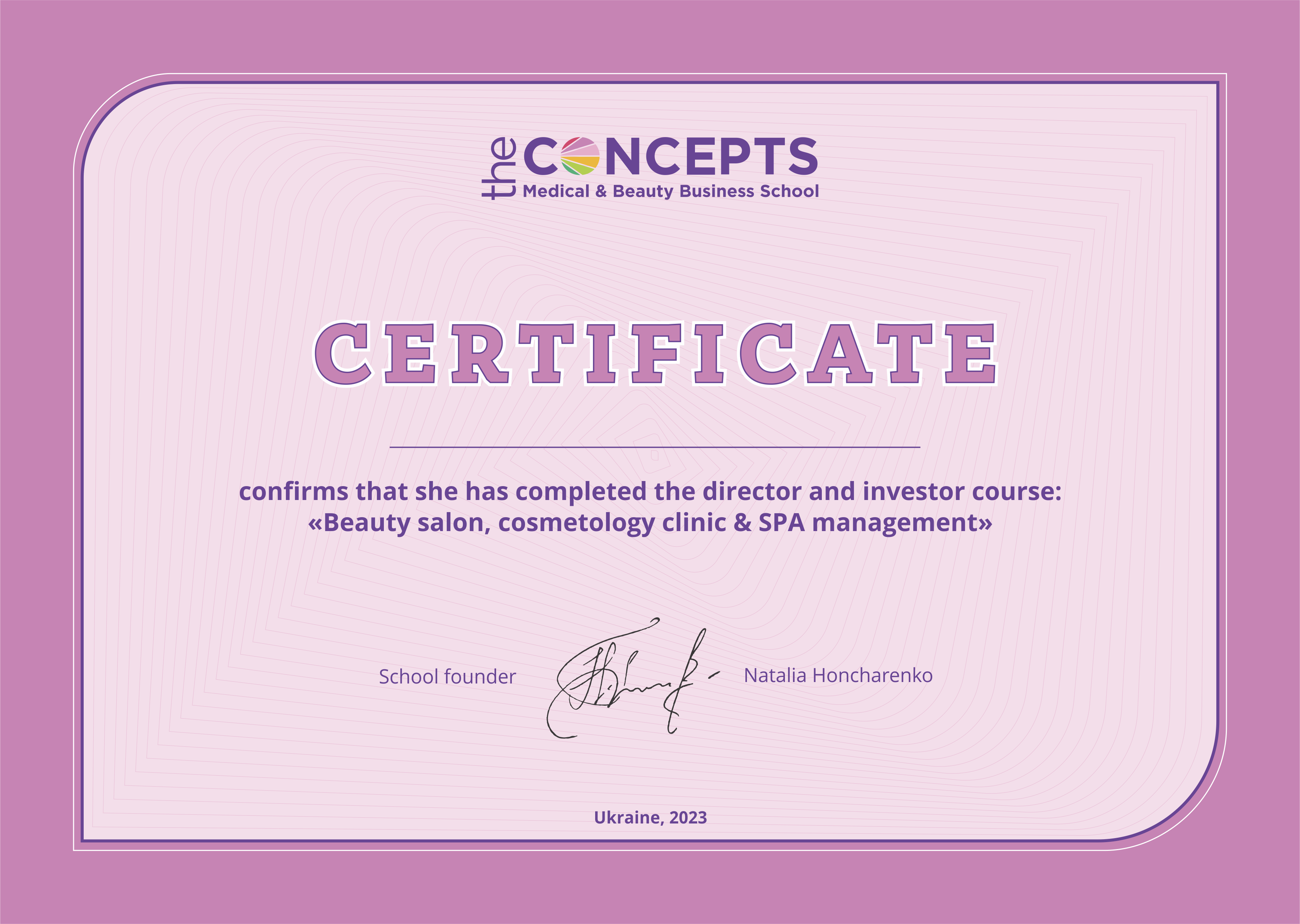 The Concepts. Beauty & Medical Business School. Сертифікат