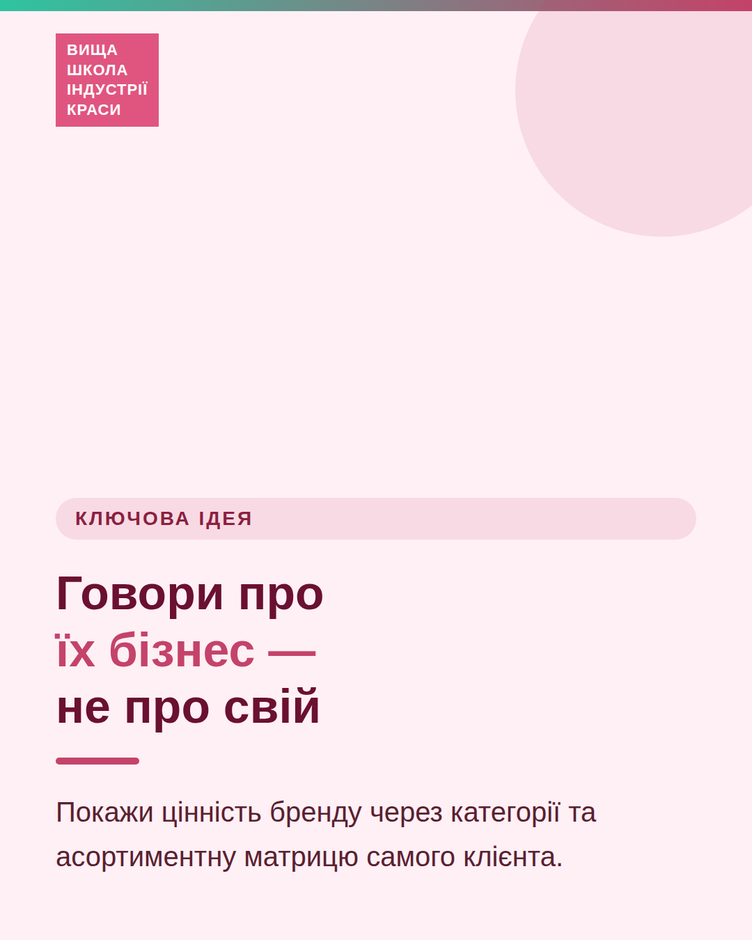 - Що менеджери з продажу та бренд-менеджери дистриб’юторів повинні знати про бізнес клієнтів (салонів краси, косметологічних клінік, майстрів, магазинів професійної косметики тощо).