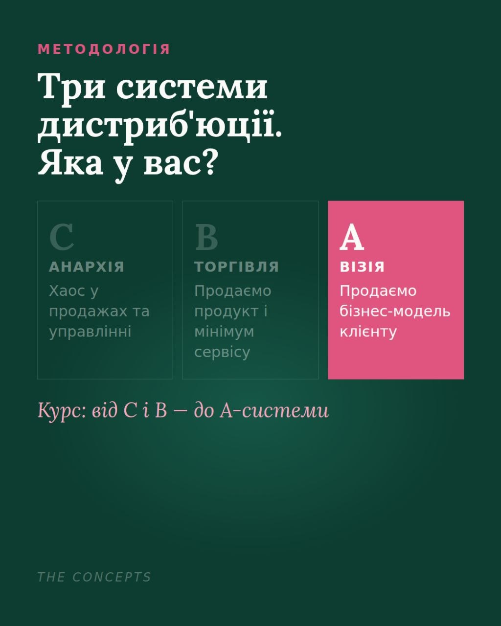 Поки ваші конкуренти будують А-систему дистриб'юції – ви платите зарплату людям, які не вміють продавати нічого, крім знижки.