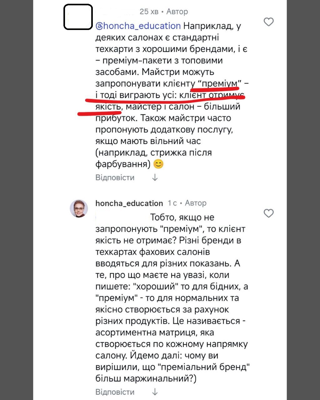 Майстри в цьому впевнені не менше. Адже вважають, що категорії - один з трьох стовпів аргументації ціни на послуги. Разом з "преміум-косметикою" і "орендою, обладнанням та іншими витратами".